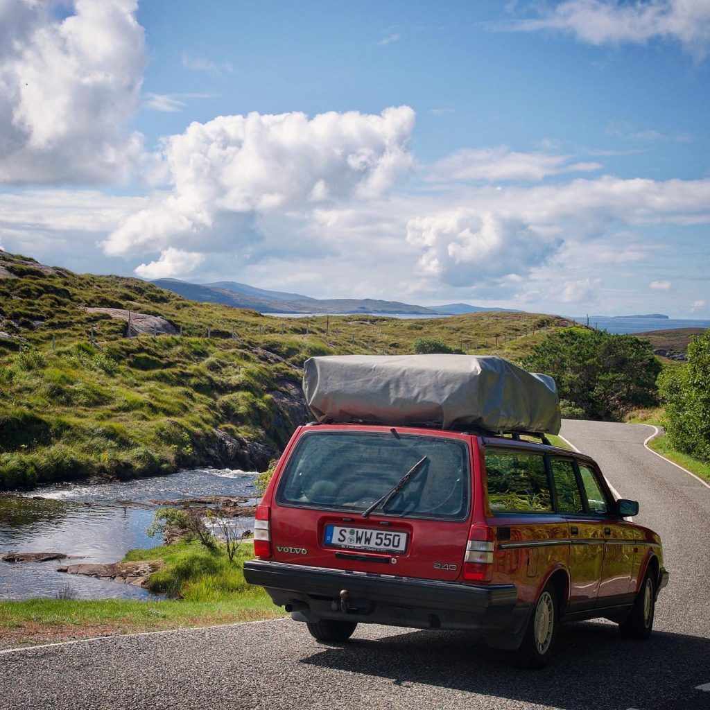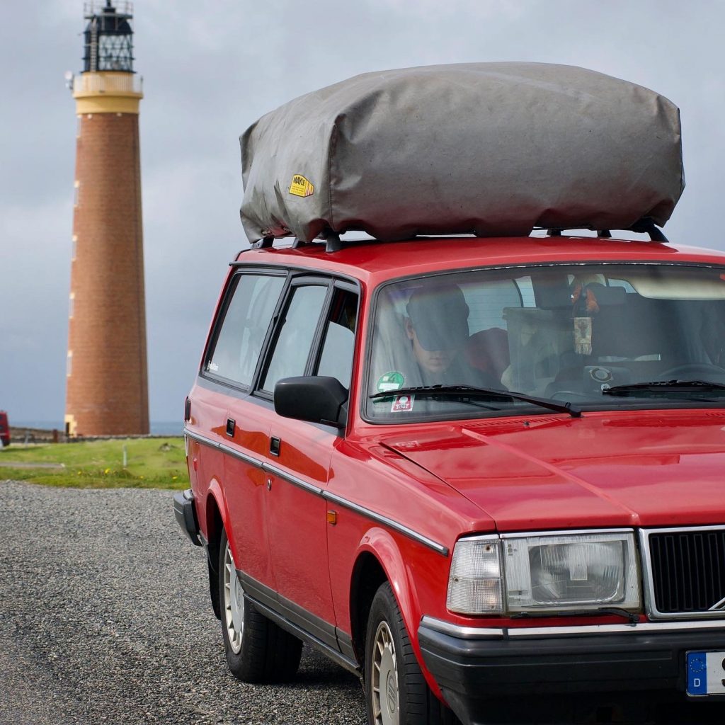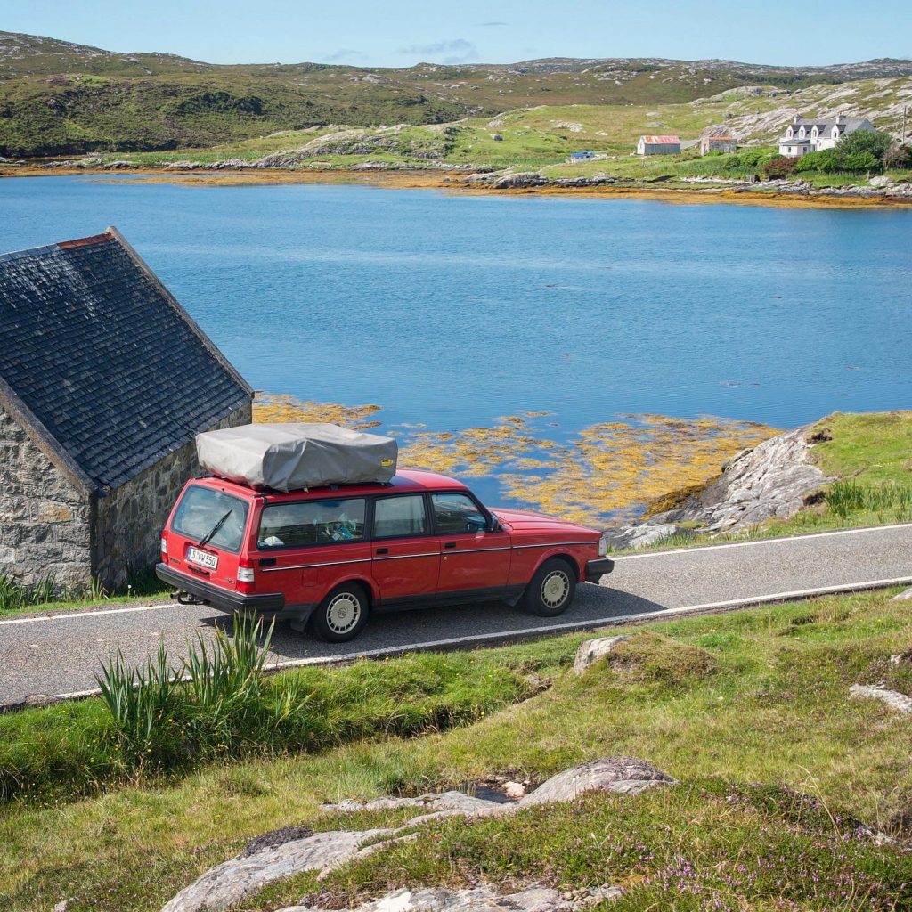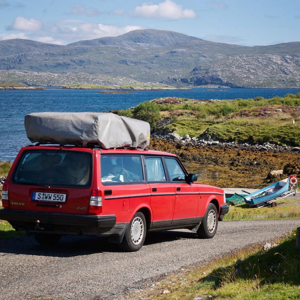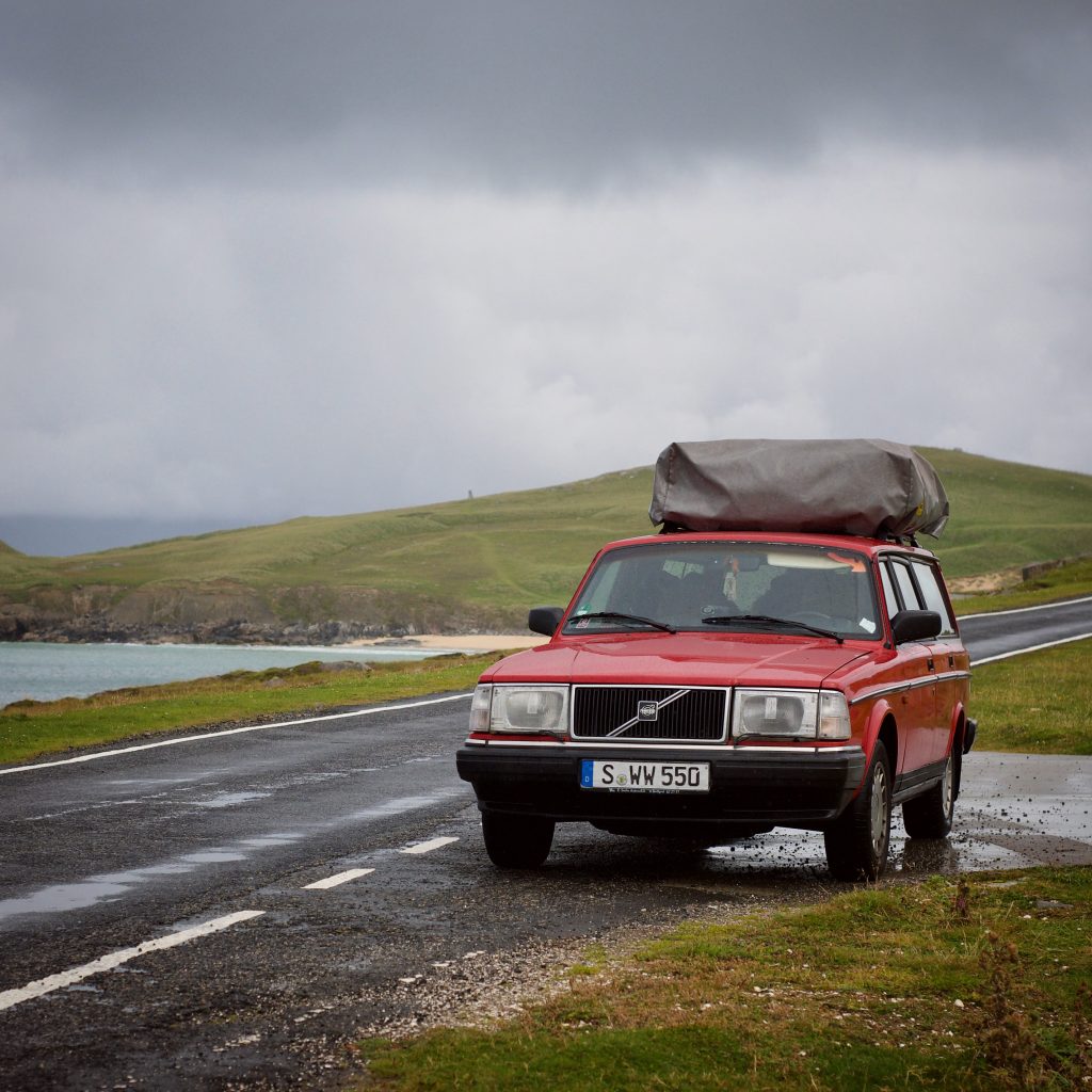 We had to leave our cosy cabin in Stornoway and headed south to Harris for another Volvo camper session. The weather was perfect again and Jesse, Malte and I visited the beautiful west coast of Lewis with the Gearrannan Blackhouse Village. Then up to Harris where we pitched the roof tent at Nisabost Beach.