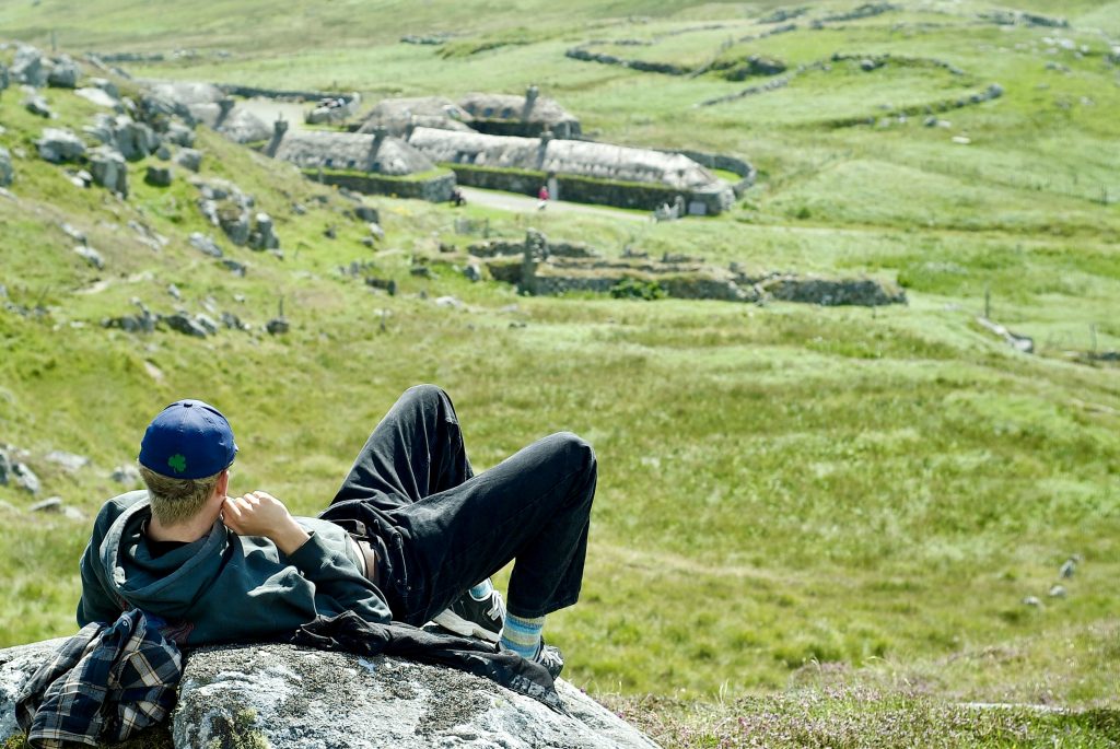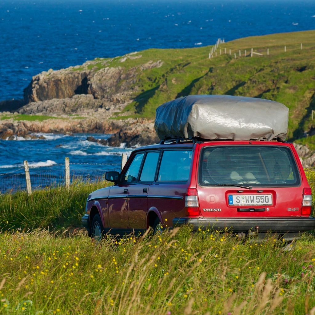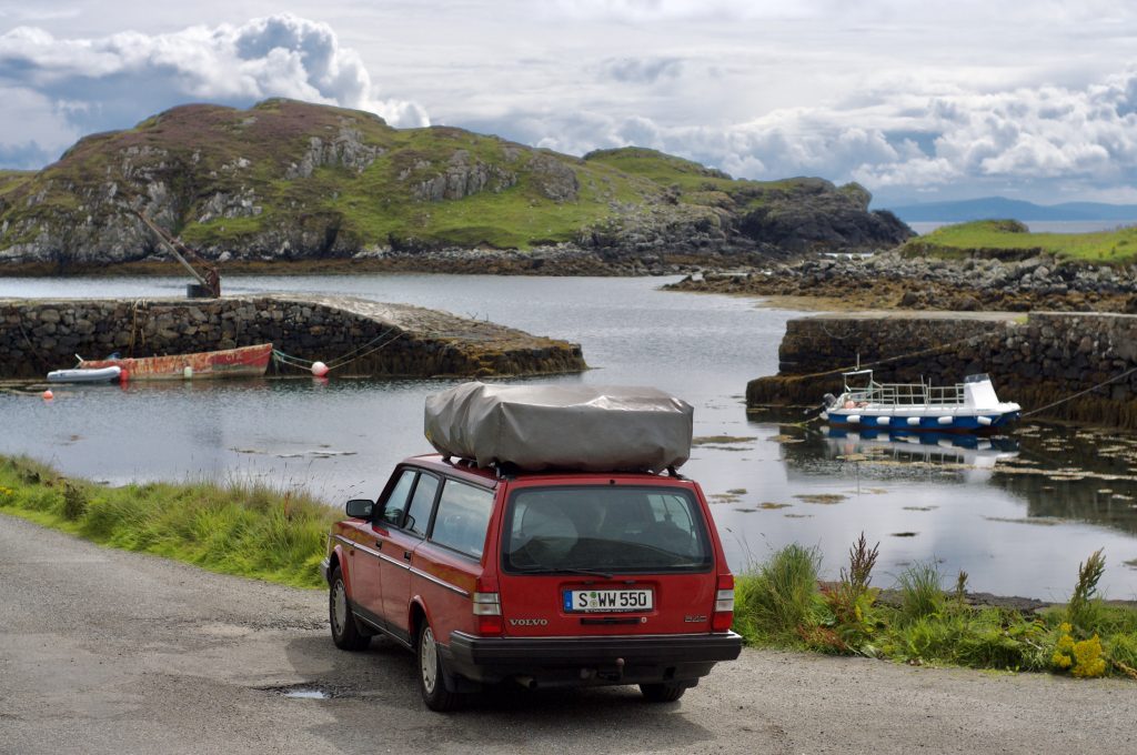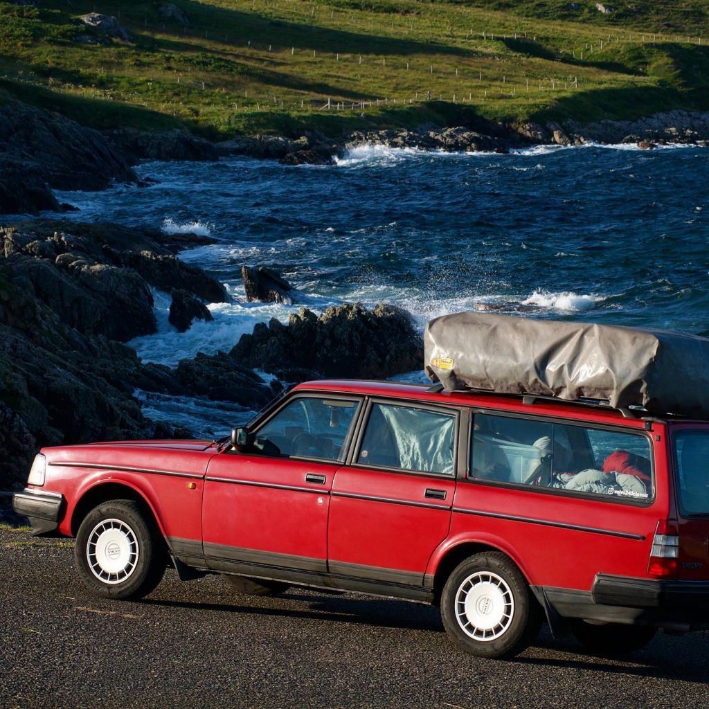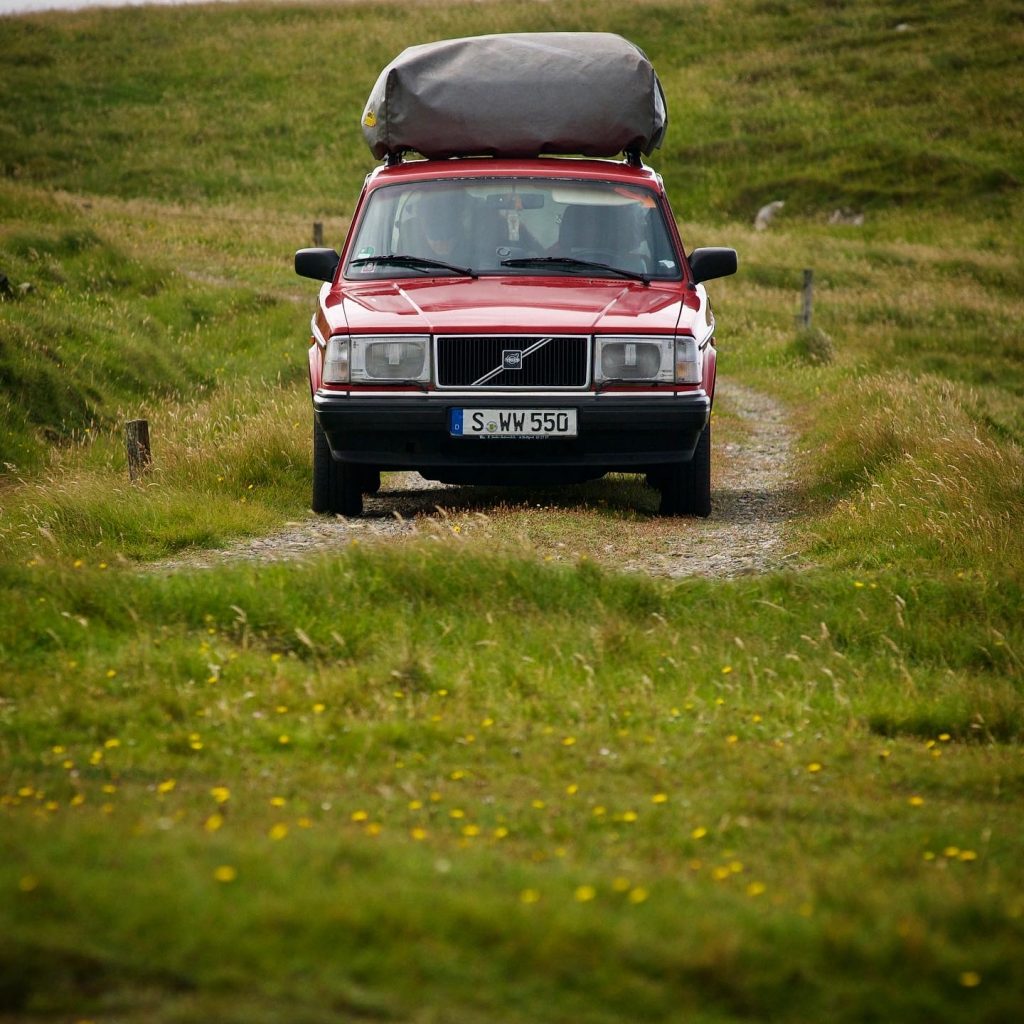 We had to leave our cosy cabin in Stornoway and headed south to Harris for another Volvo camper session. The weather was perfect again and Jesse, Malte and I visited the beautiful west coast of Lewis with the Gearrannan Blackhouse Village. Then up to Harris where we pitched the roof tent at Nisabost Beach.
