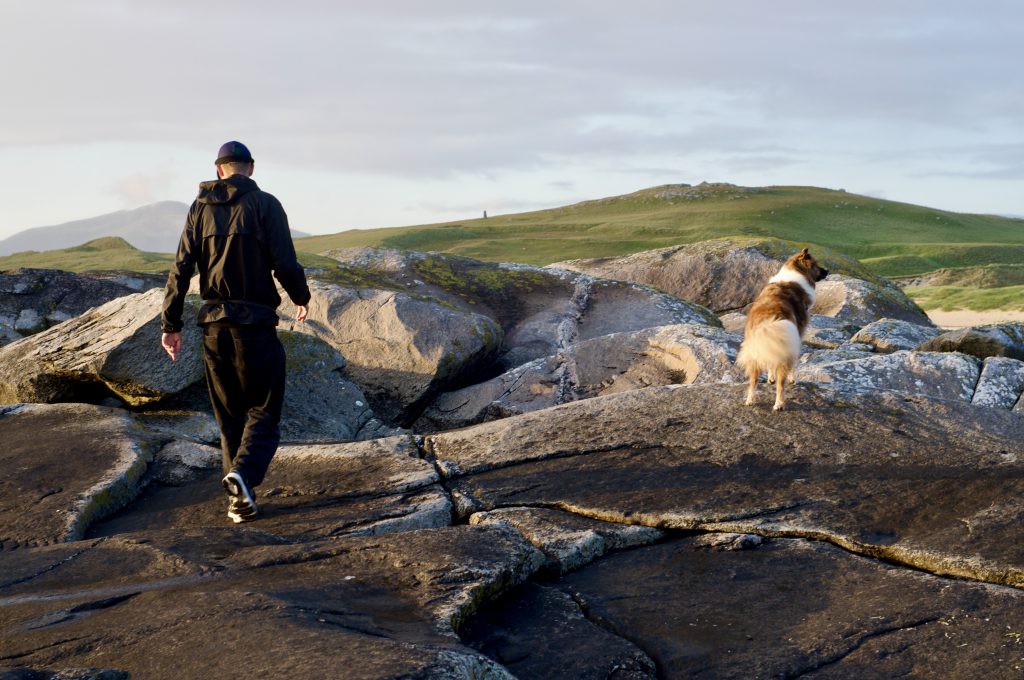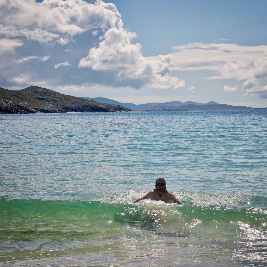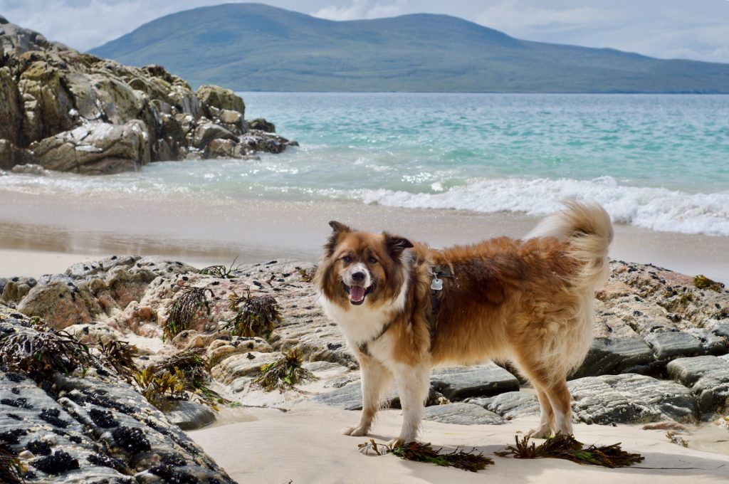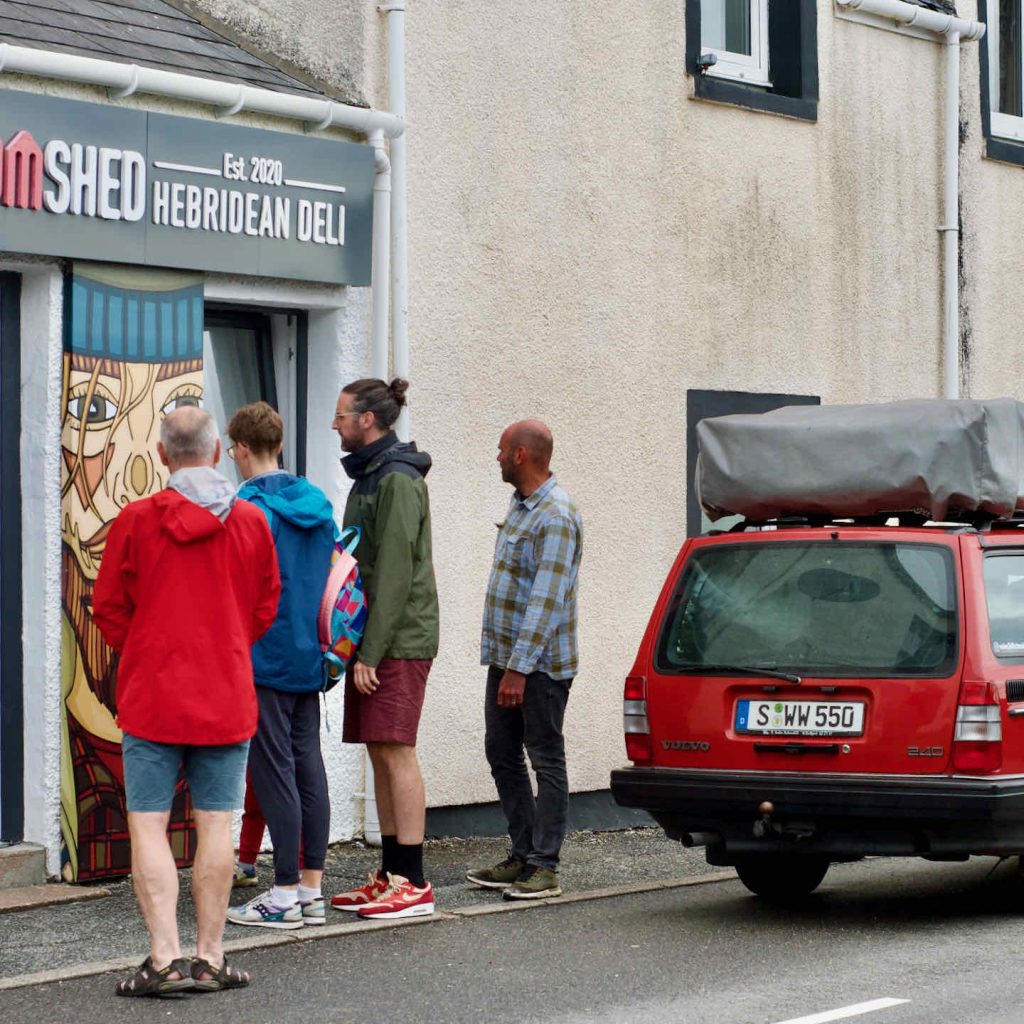 Today it was typical Hebridean weather again — all in one day. The morning was rainy, but then the sun came through and we were able to enjoy the beautiful beaches of Nisabost. Before that Malte and I bought some coffee and vegan pastries in the delicious Loomshed Hebridean Deli.