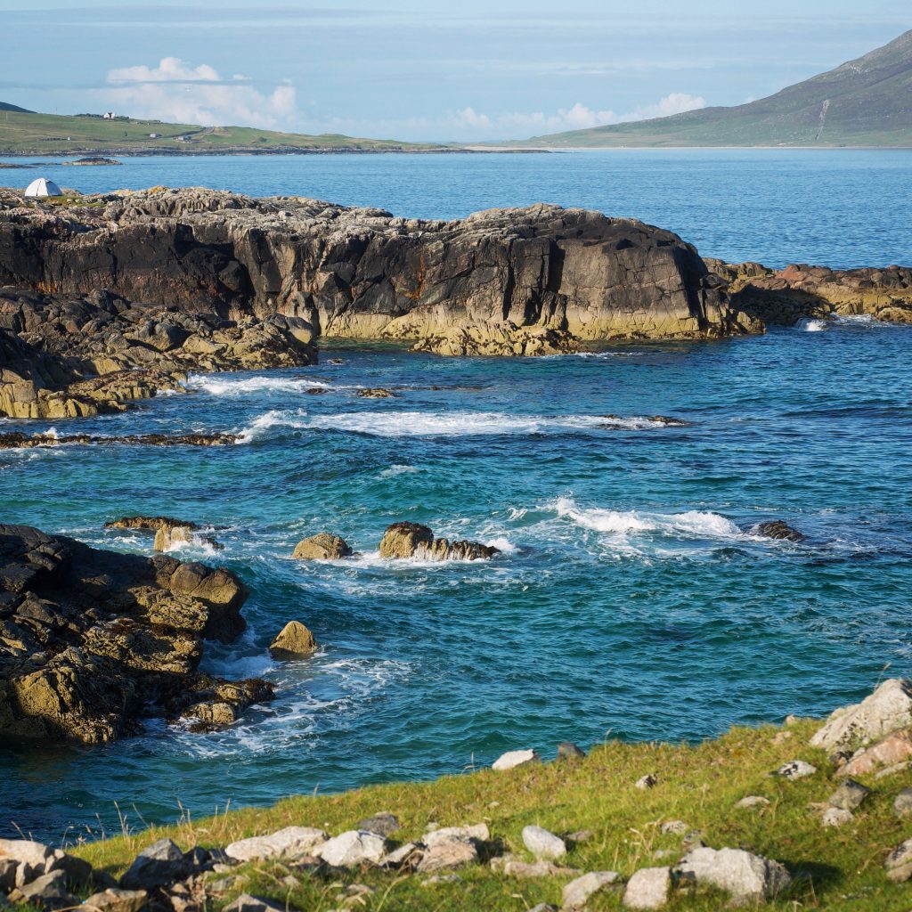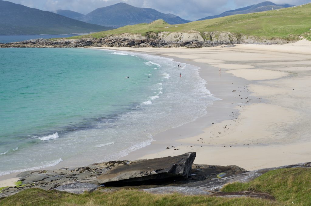 Some days start like a nightmare and end wonderfully. After half a nervous breakdown and endless pushing in the early morning, Ruby was finally running properly again. And we reached the ferry to Harris on time. And in Harris we were greeted by perfect weather and the most beautiful landscape I have ever seen.