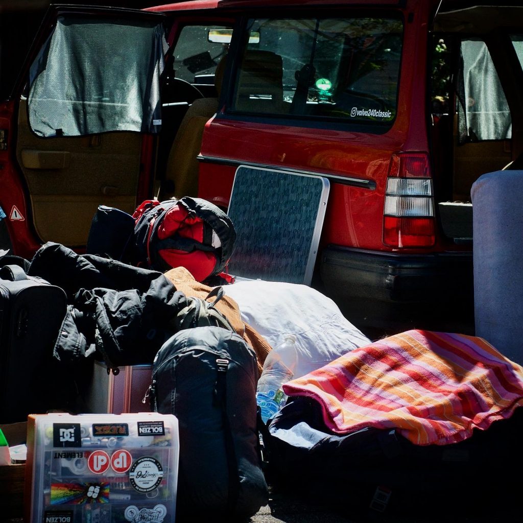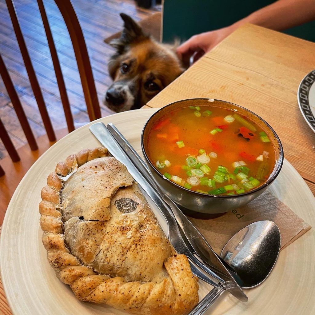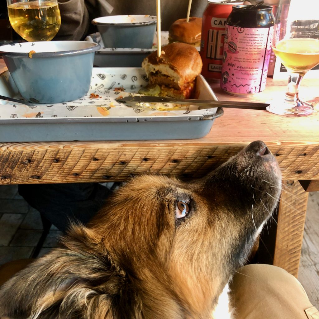 Sometimes you don’t sleep very well in a roof tent. Last night there was a storm and lashing rain in Arisaig and Malte was shaken in the roof tent while Jesse and I in the boot didn’t notice much. Since there was no petrol station nearby, we drove back to Fort William after drying up and had super delicious vegan lunch there at the great The Wildcat in Fort William. Then back to the highlands to Laggan again. Jesse is having trouble with skin irritations, so Malte gave him a good powdering.